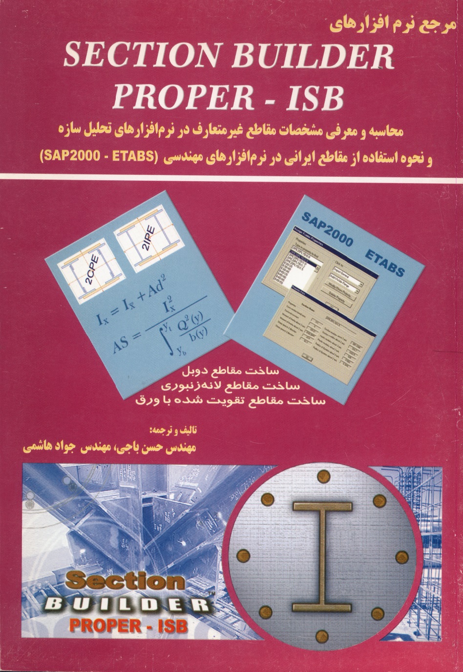 این کتاب در دو بخش تدوین شده است .در بخش نخست قابلیتهای نرم افزار Section Builderدر طراحی, تحلیل و انجام محاسبات مربوط به سازههای فنی معرفی میشود ضمن آن که مولف درباره کارکرد منوها و ابزارهای موجود در این نرم افزار و چگونگی استفاده از آن برای ساخت سریع مقاطع سازهای و محاسبه مشخصات آنها توضیح میدهد` .تنظیم محیط کار و نماها`, `اضافه کردن به مقطع`, `ویرایش یا اصلاح یک شکل `و `اختصاص مشخصات مصالح به شکل `از جمله مباحث این بخش است .در بخش دوم نیز پس از معرفی نرم افزارهای Properو ISBامکانات و تواناییهای این نرم افزارها در محاسبه مشخصات هندسی مقاطع به اختصار بیان میگردد