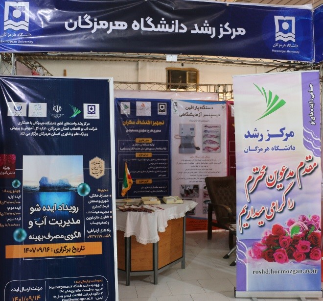 این نمایشگاه در هفته پژوهش و فناوری از تاریخ 12 لغایت 18 آذرماه در محل مجتمع آموزشی و پژوهشی پردیس 2 دانشگاه با حضور حجت الاسلام والمسلمین عبادی زاده نماینده ولی فقیه در استان و امام جمعه بندرعباس ، احسان کامرانی معاون سیاسی ، امنیتی و اجتماعی استانداری هرمزگان ، آشوری و مرادی نمایندگان مردم حوزه انتخابیه مرکز استان در مجلس شورای اسلامی ، جمعی از مدیران کل دستگاه های اجرایی و فعالان حوزه پژوهش بیست و سومین نمایشگاه دستاوردهای پژوهشی استان افتتاح شد.مرکز رشد دانشگاه نیز با برپایی غرفه و ارائه دستاوردهای واحدهای فناور در این نمایشگاه شرکت نمود.