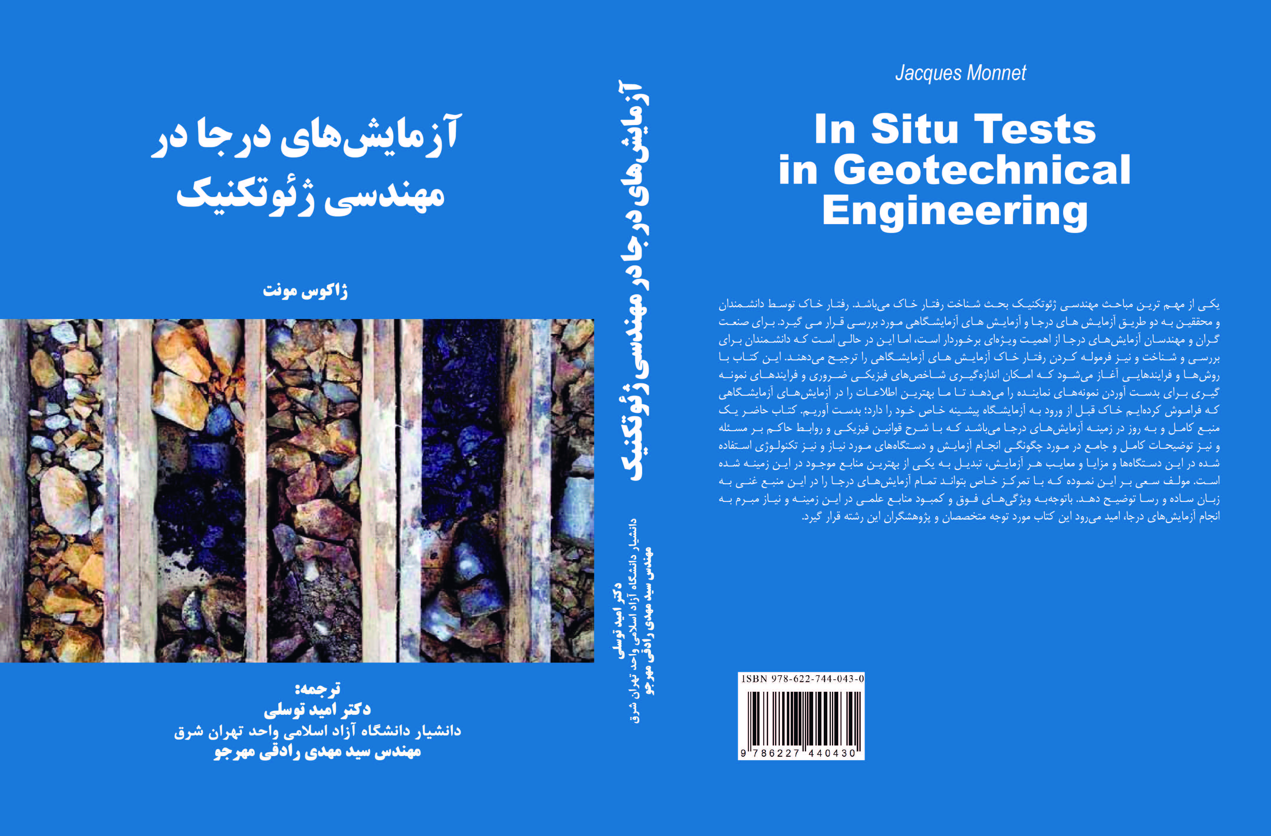 1- آزمایشهای درجا در مهندسی ژئوتکنیک تالیف دکتر امید توسلی، مهندس سیدمهدی رادقیمهرجو 2- تاریخ و سبکشناسی باغسازی تالیف دکتر مرضیه رضائی، دکتر مهرداد بابا ربیع
