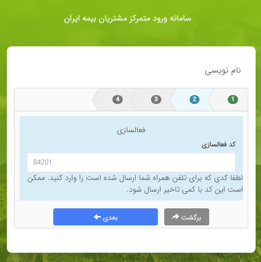 3- درج کد ملی و شماره تلفن همراه متعلق به همان کد ملی