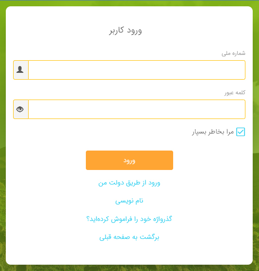1- نام کاربری (که همان کد ملی می باشد) و کلمه عبور که در مراحل قبل تعریف نموده است