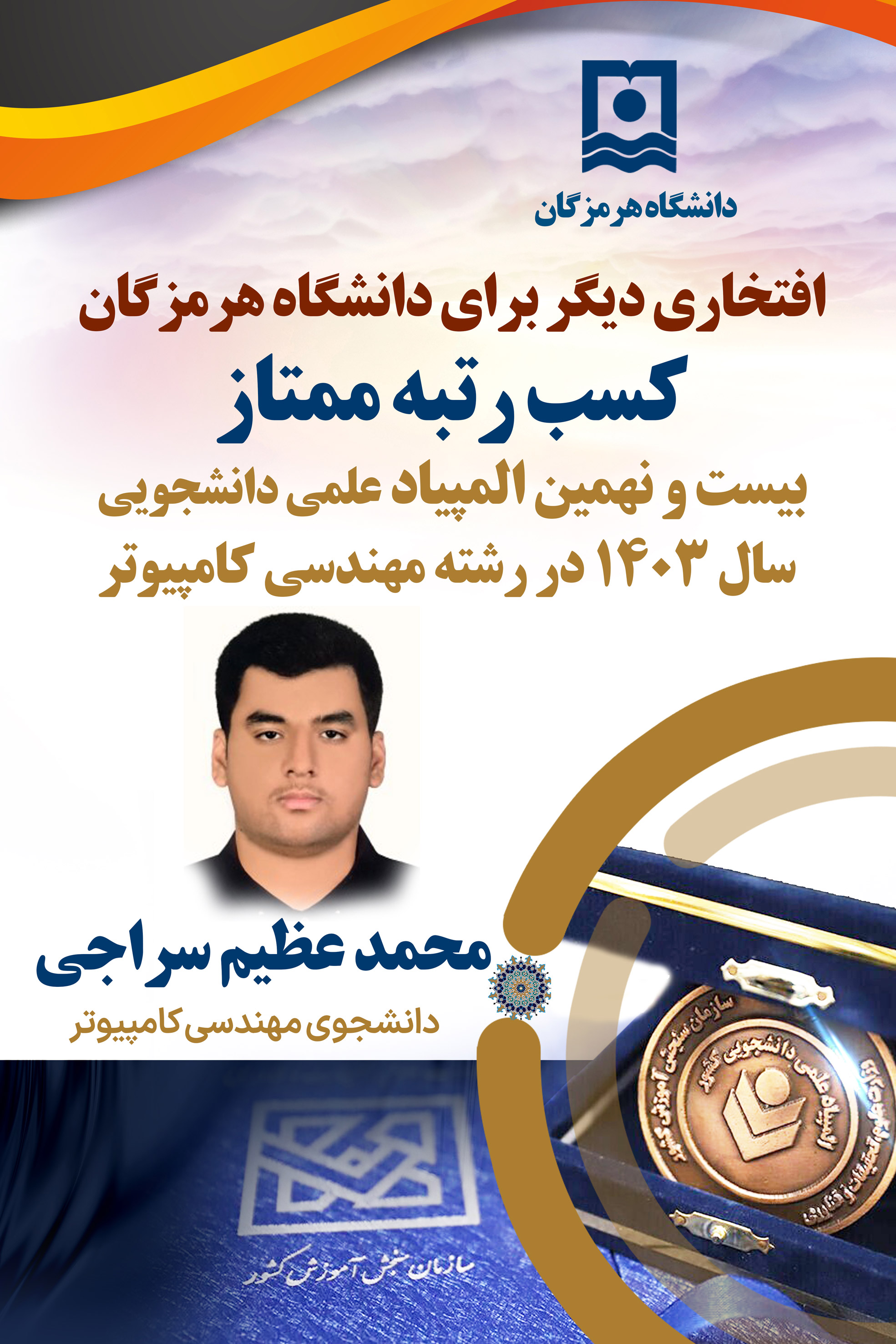 درخشش دانشجوی دانشگاه هرمزگان در مرحله نهایی بیست و نهمین المپیاد علمی دانشجویی کشور