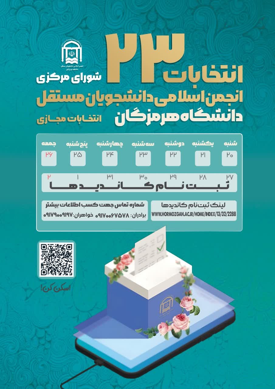 آغاز نام‌نویسی بیست‌وسومین دوره انتخابات شورای مرکزی انجمن اسلامی دانشجویان مستقل دانشگاه هرمزگان