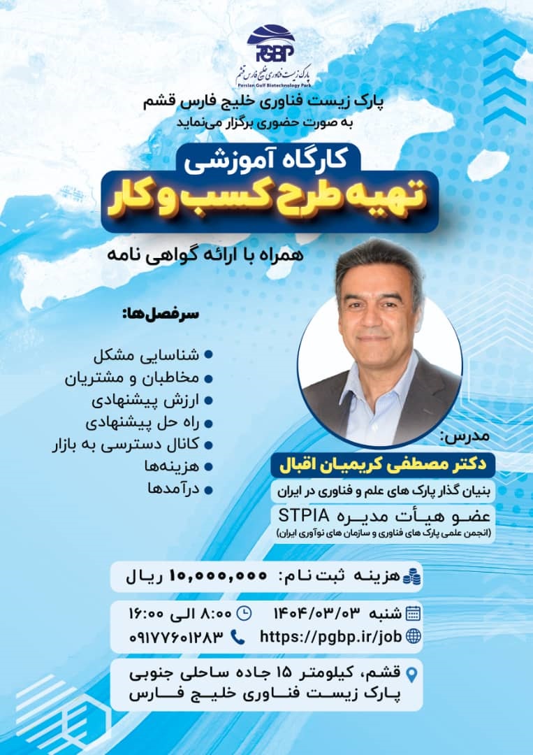 کارگاه تخصصی "تهیه طرح کسب‌وکار" با تدریس بنیان‌گذار پارک‌های علم و فناوری ایران
