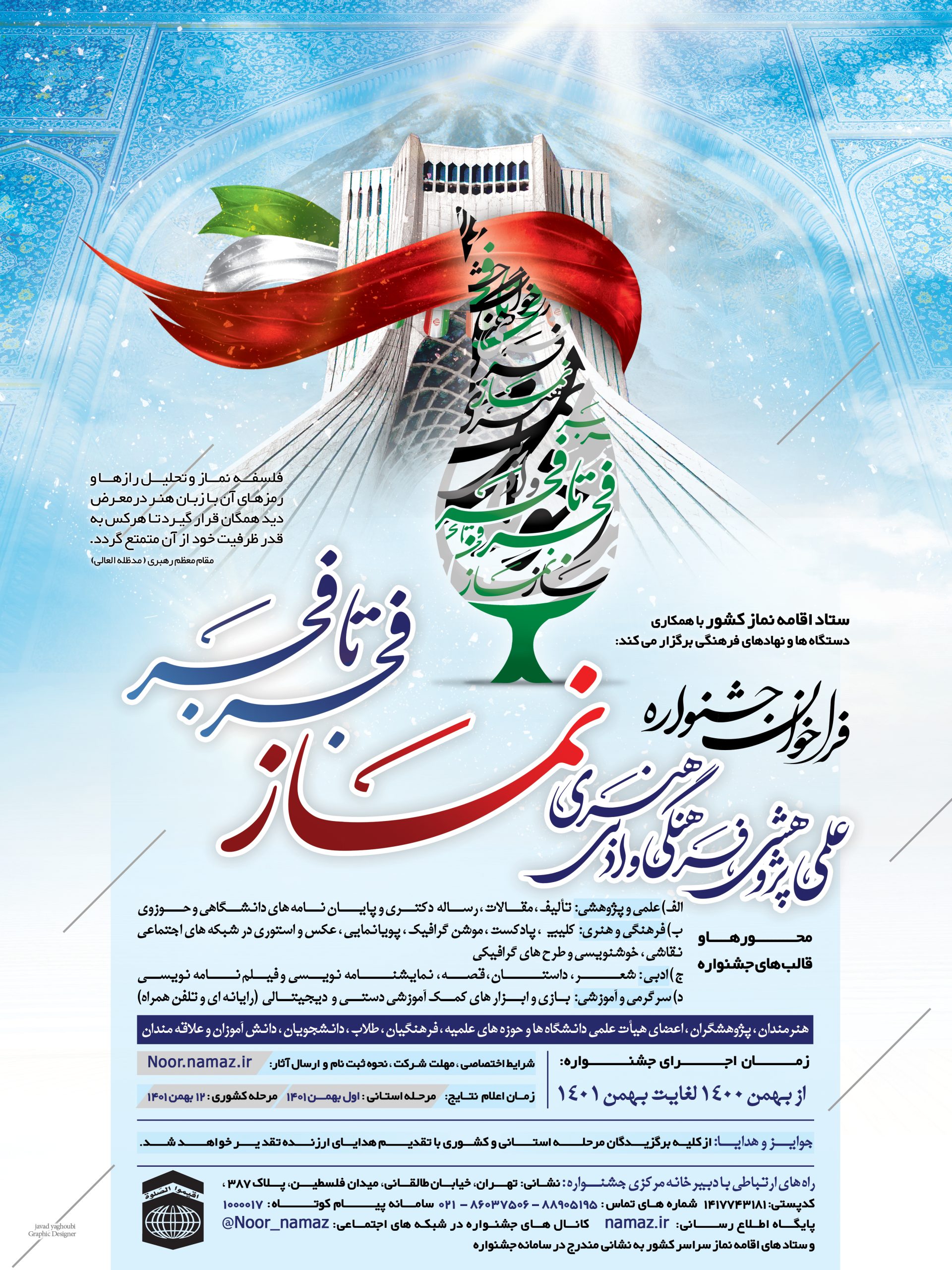 اولین جشنواره سراسری علمی، پژوهشی، فرهنگی، هنری و ادبی نماز با عنوان فجر تا فجر توسط ستاد اقامه نماز برگزار می شود.