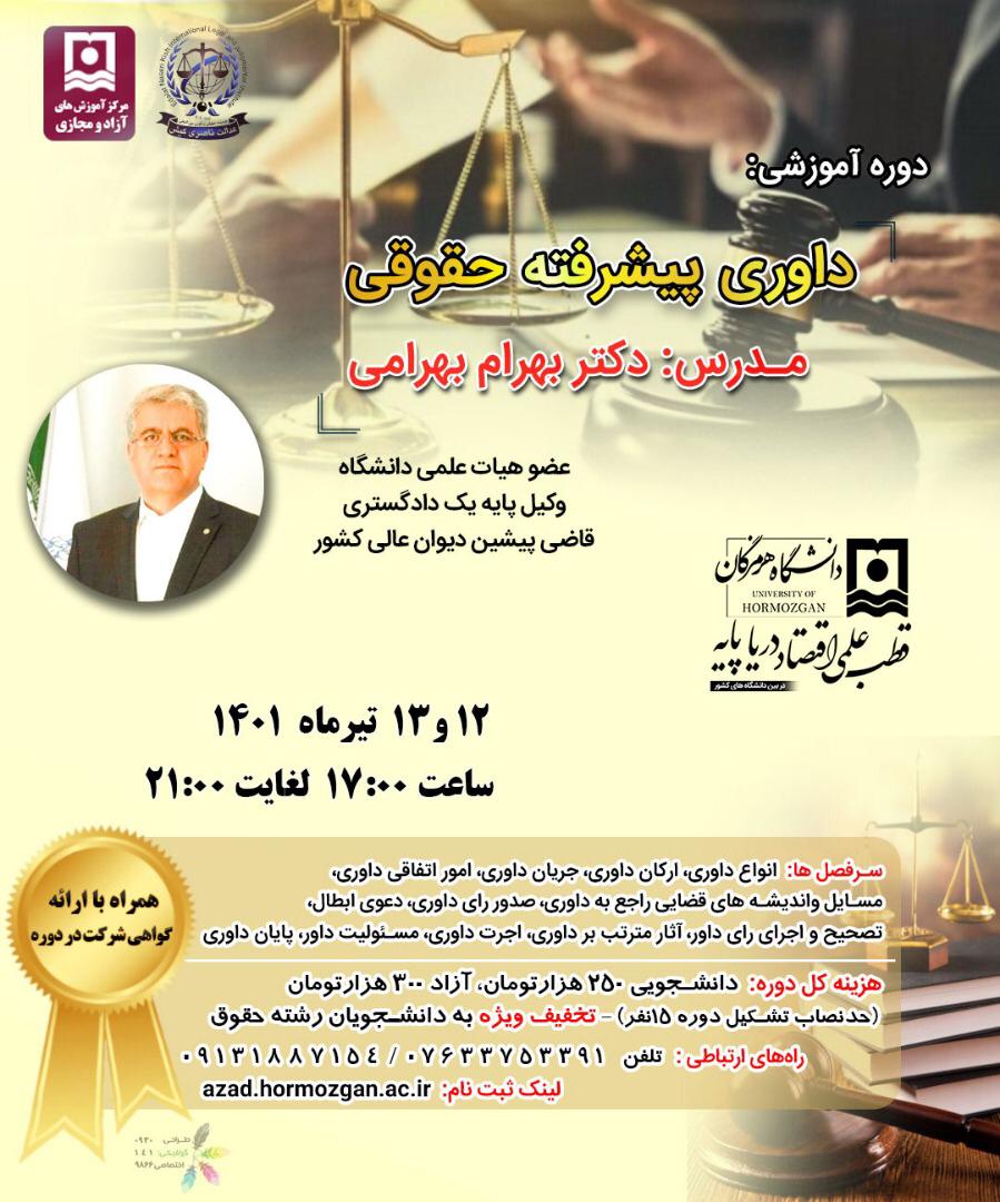 مرکز آموزش های آزاد و مجازی دانشگاه هرمزگان برگزار می کند؛دوره داوری پیشرفته حقوقی