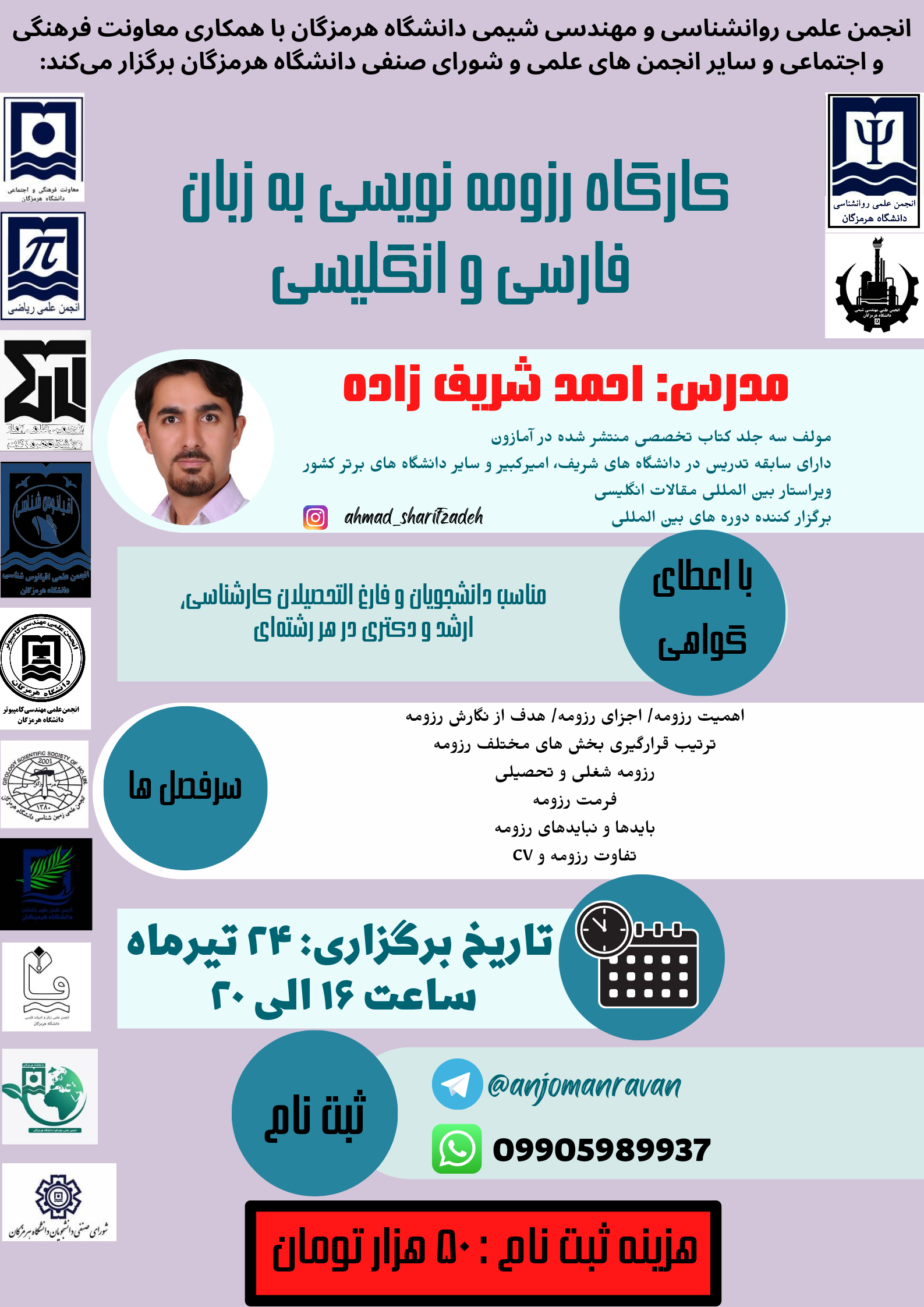 کارگاه رزومه نویسی به زبان فارسی و انگلیسی