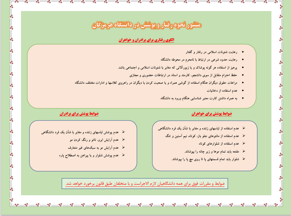 منشور نحوه رفتار و پوشش در دانشگاه هرمزگان