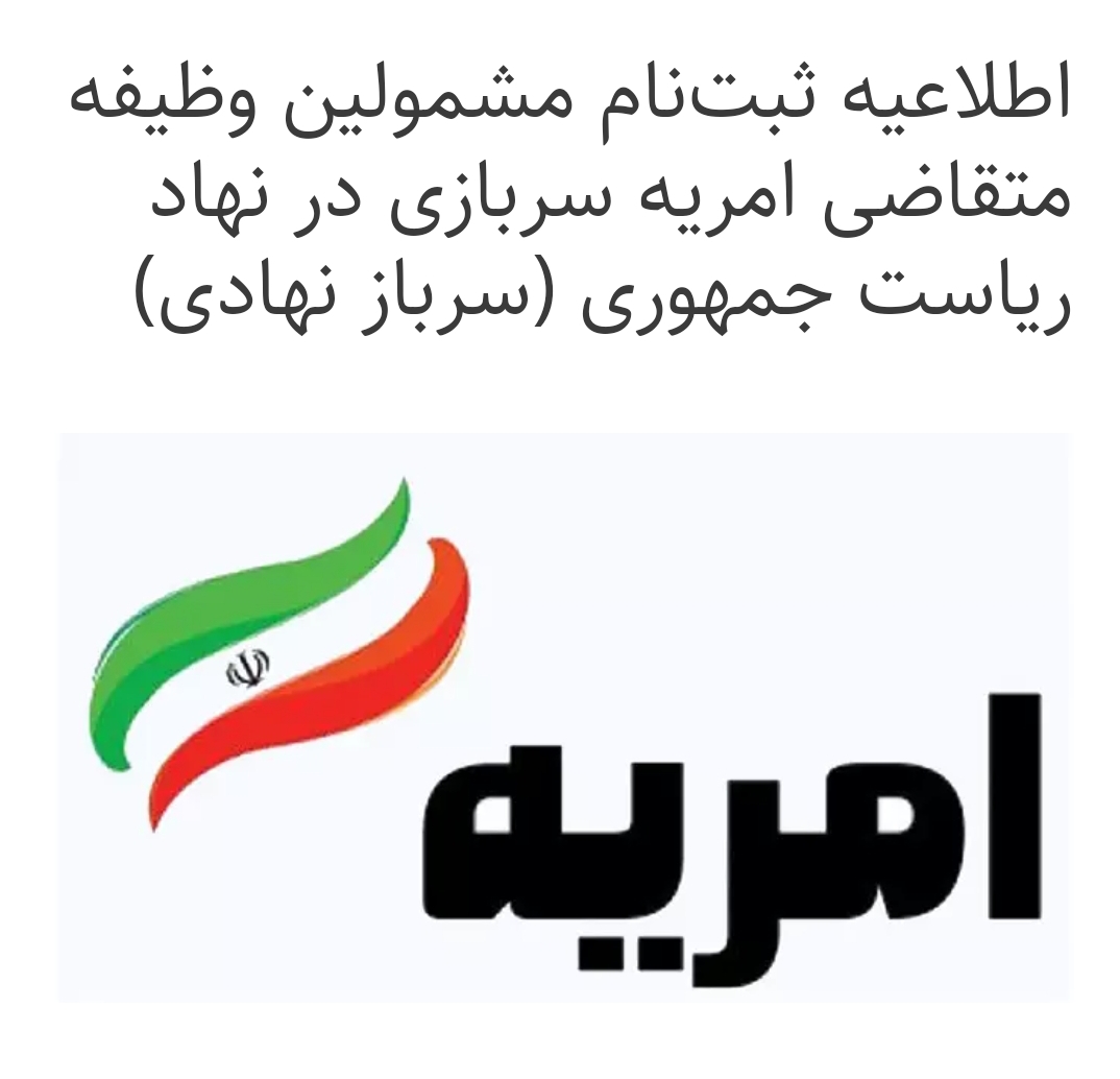 اطلاعیه ثبت‌نام مشمولین وظیفه متقاضی امریه سربازی در نهاد ریاست جمهوری (سرباز نهادی)