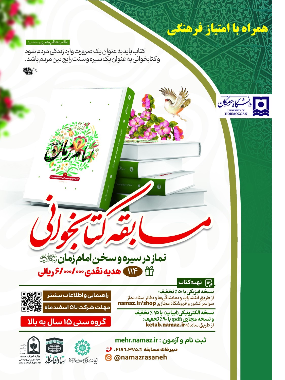 فراخوان دعوت به شرکت در ششمین مسابقه سراسری کتابخوانی نماز با عنوان "نماز در سیره و سخن امام زمان (عج)"
