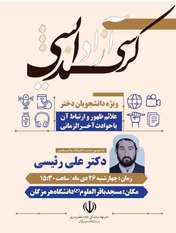 دعوت به شرکت در کرسی آزاداندیشی با عنوان "علائم ظهور وارتباط آن باحوادث آخرالزمانی"