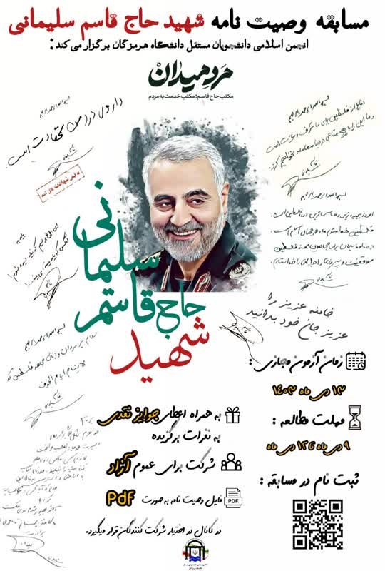 فراخوان شرکت در مسابقه وصیت‌نامه خوانی سرباز وطن شهید حاج قاسم سلیمانی