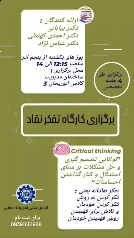 برگزاری کارگاه آموزشی تفکر نقاد