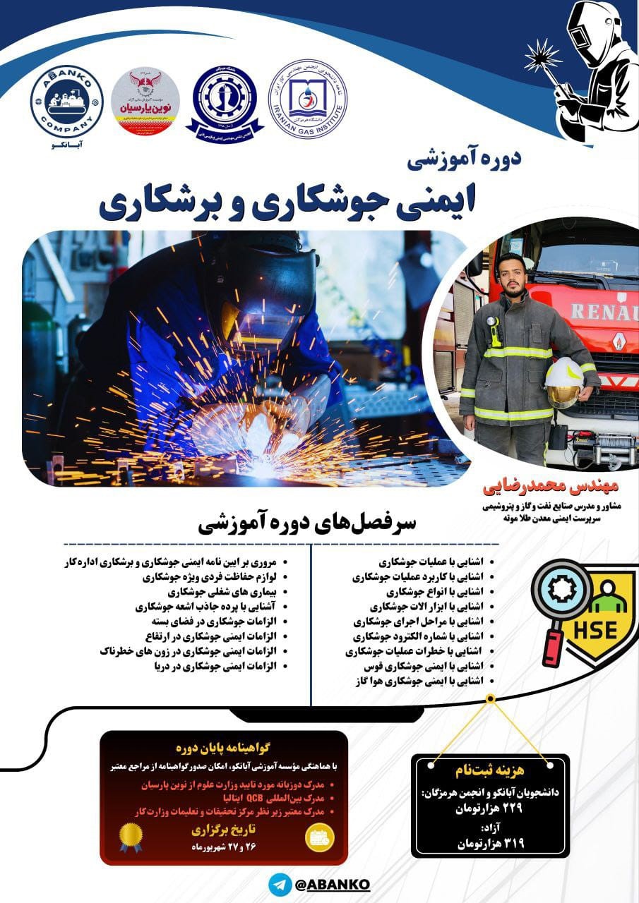 انجمن علمی مهندسی گاز دانشگاه هرمزگان با همکاری مؤسسه آبانکو برگزار می‌نماید: