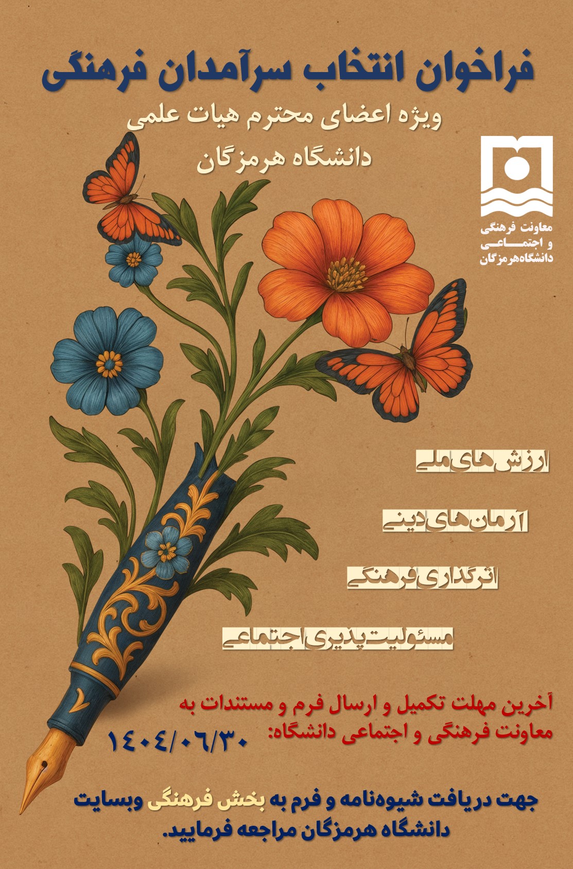 فراخوان انتخاب سرآمدان فرهنگی ویژه اعضای هیأت علمی دانشگاه هرمزگان