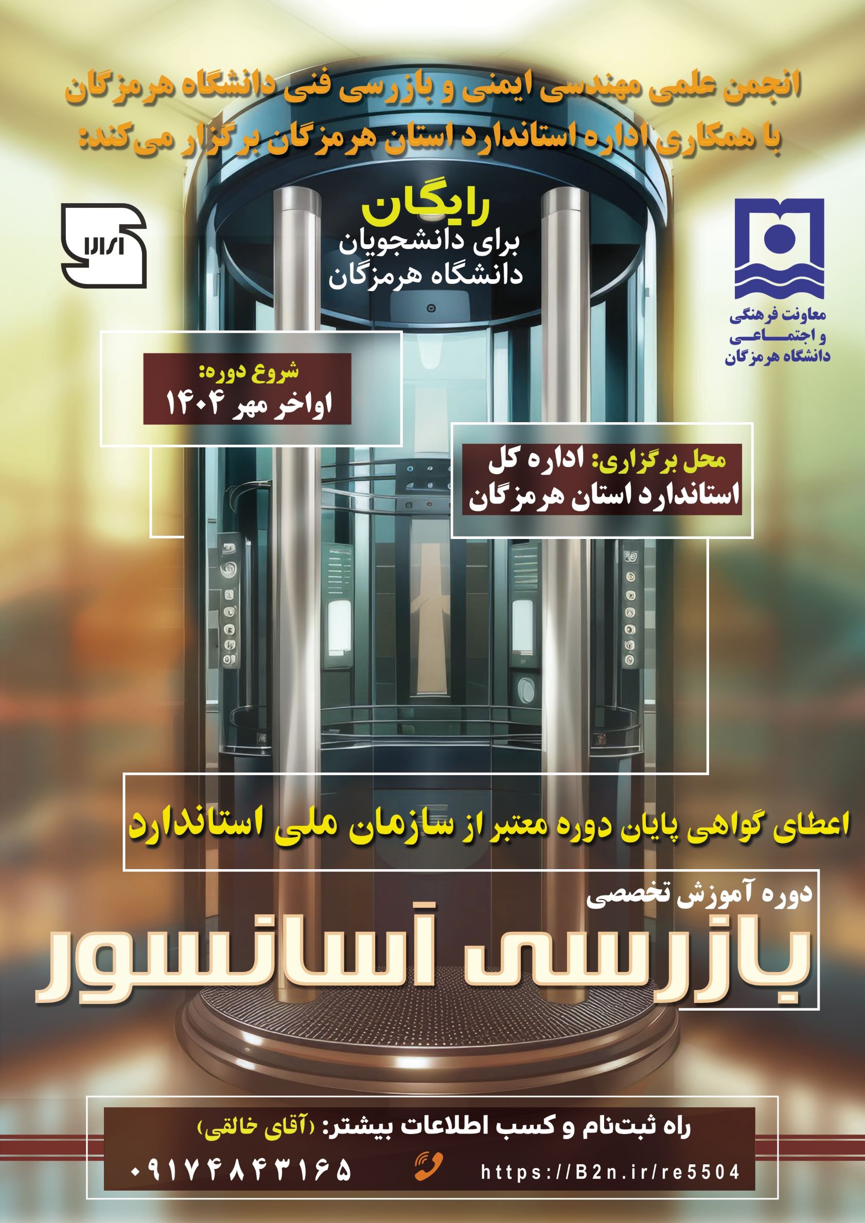 برگزاری دوره تخصصی «بازرسی آسانسور» با همکاری دانشگاه هرمزگان و اداره استاندارد
