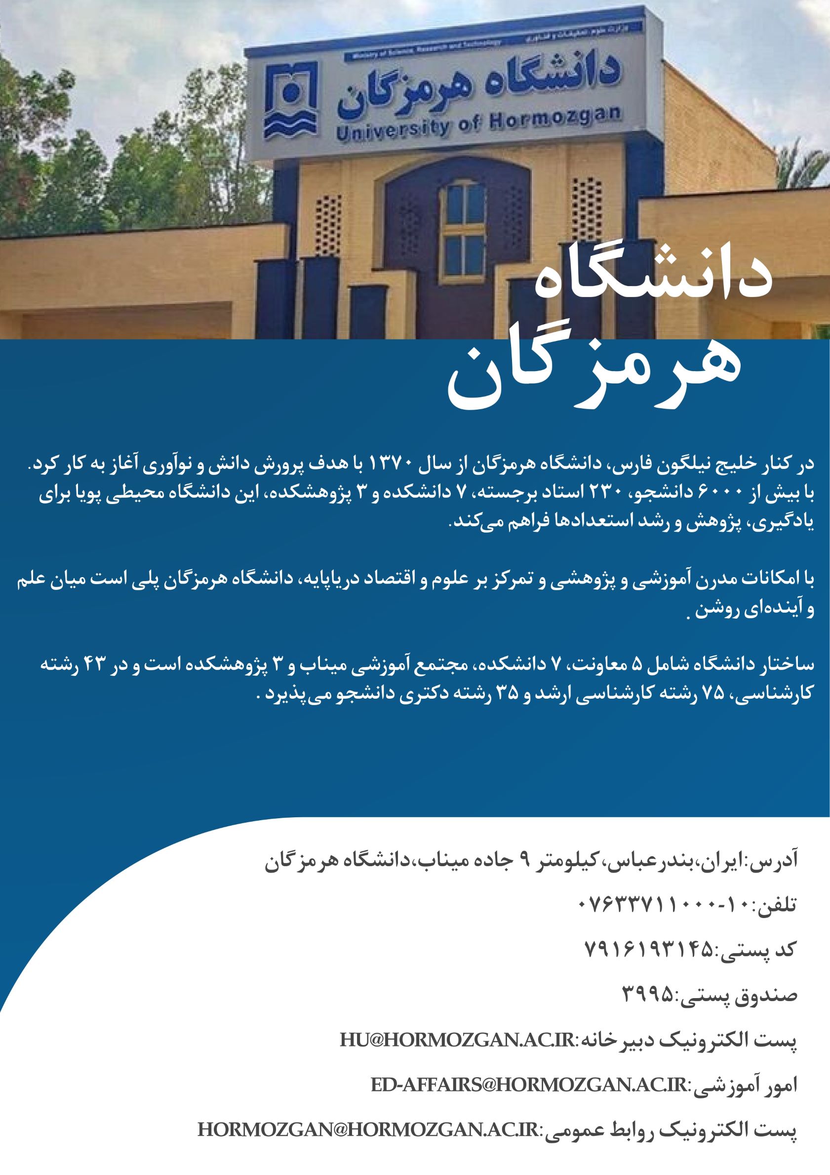 معاونت فرهنگی و اجتماعی دانشگاه هرمزگان برگزار می‌نماید: