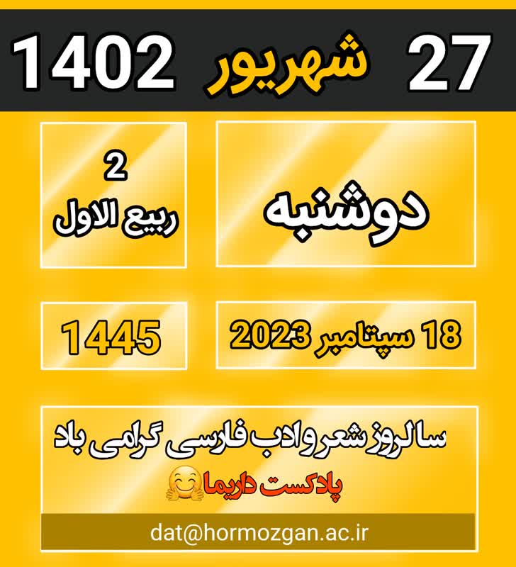 سه شنبه 28 شهریور ماه 1402