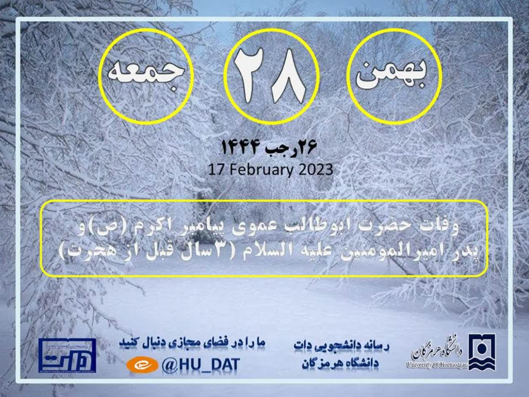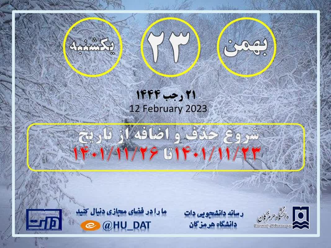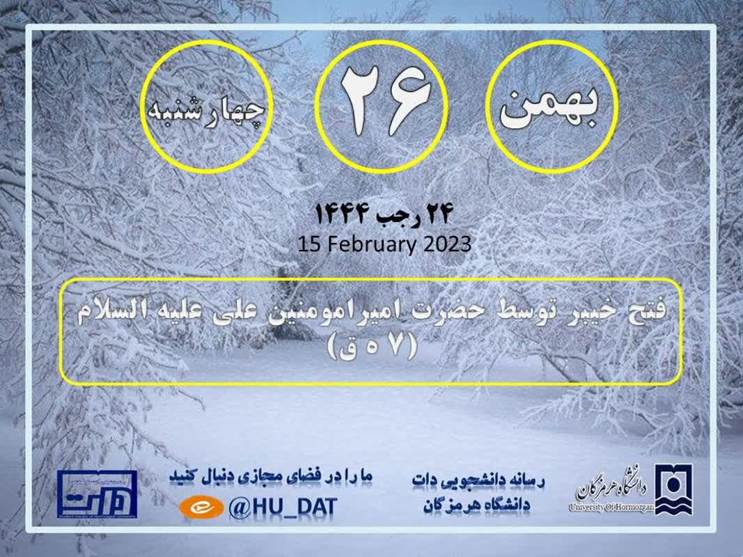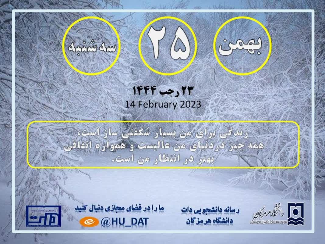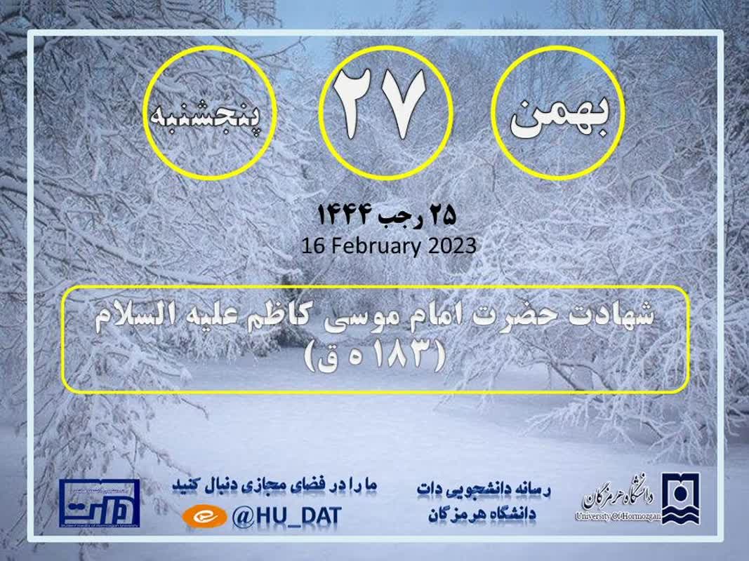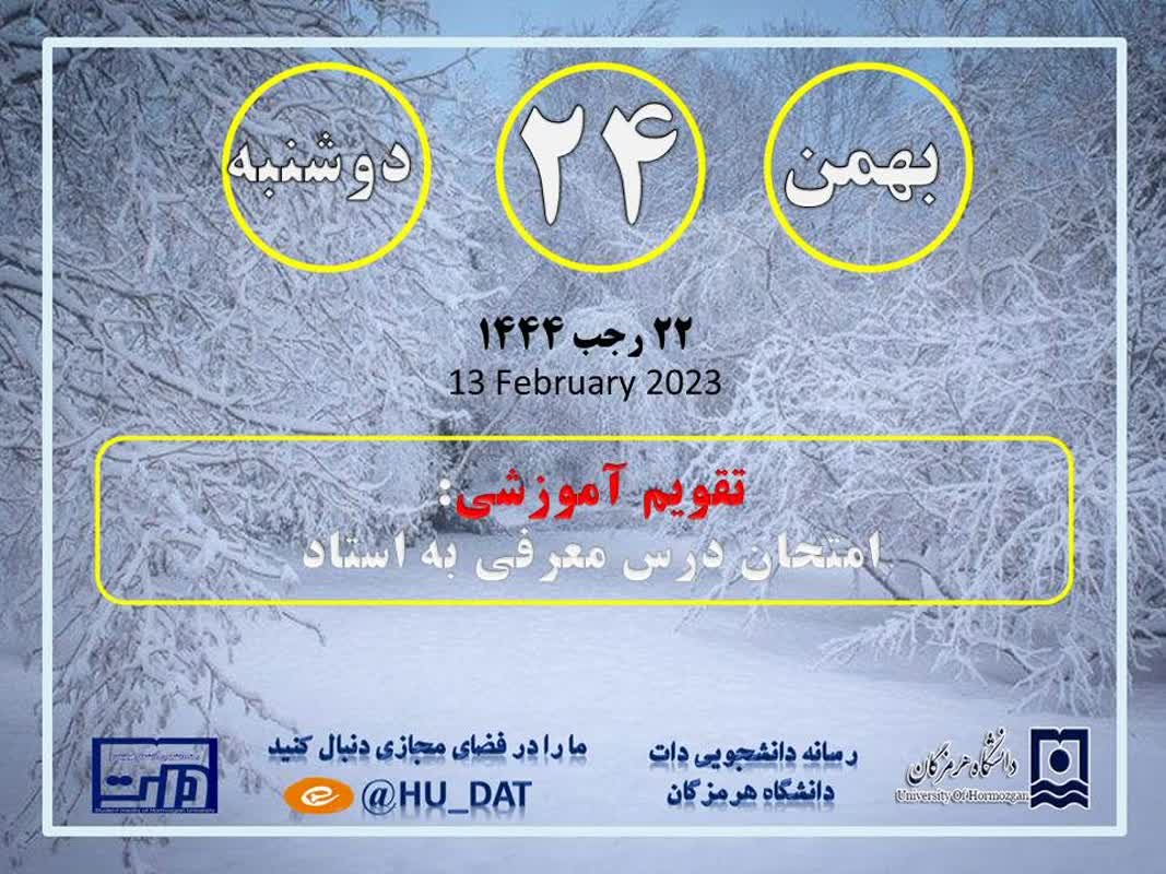 شنبه ۲۹ بهمن ۱۴۰۱ - ساعت ۲۱ -همراه با قرعه‌کشی مسابقه‌ی پیامکی