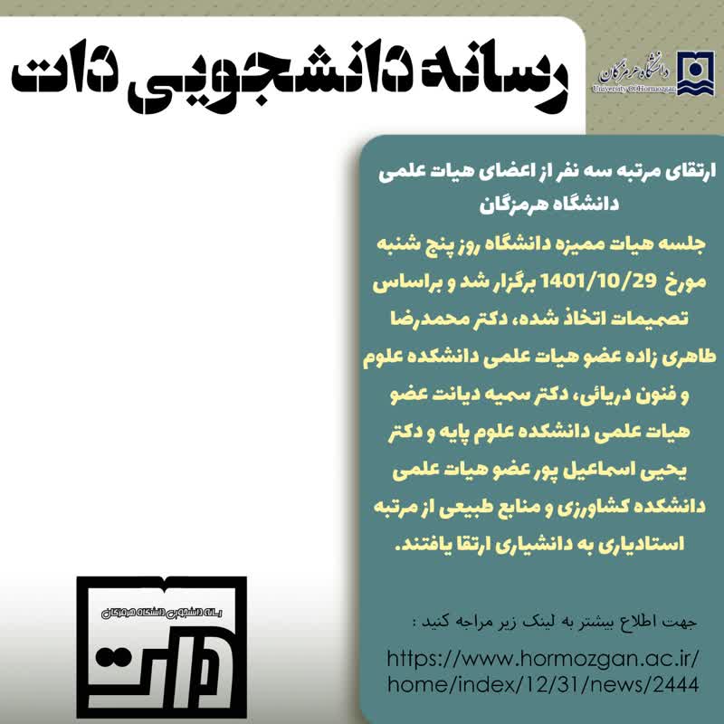 تبریک رسانه دانشجویی (( دات)) بابت ارتقای مرتبه سه نفر از اعضای هیات علمی دانشگاه هرمزگان