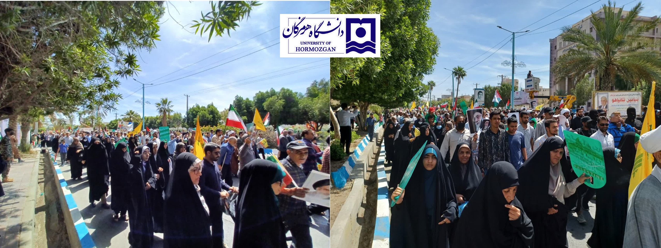 دانشگاه هرمزگان به عنوان یکی از پایگاه های علمی و انقلابی استان، همواره در عرصههای ملی و مردمی پیشتاز بوده است. حضور فعال جامعه دانشگاهی در این راهپیمایی، گواهی بر تداوم روحیه مقاومت و مسئولیت پذیری در راستای دفاع از آرمان های انقلاب اسلامی و حمایت از مستضعفان جهان بود.