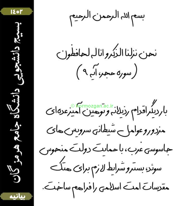 بیانیه بسیج دانشجویی دانشگاه هرمزگان