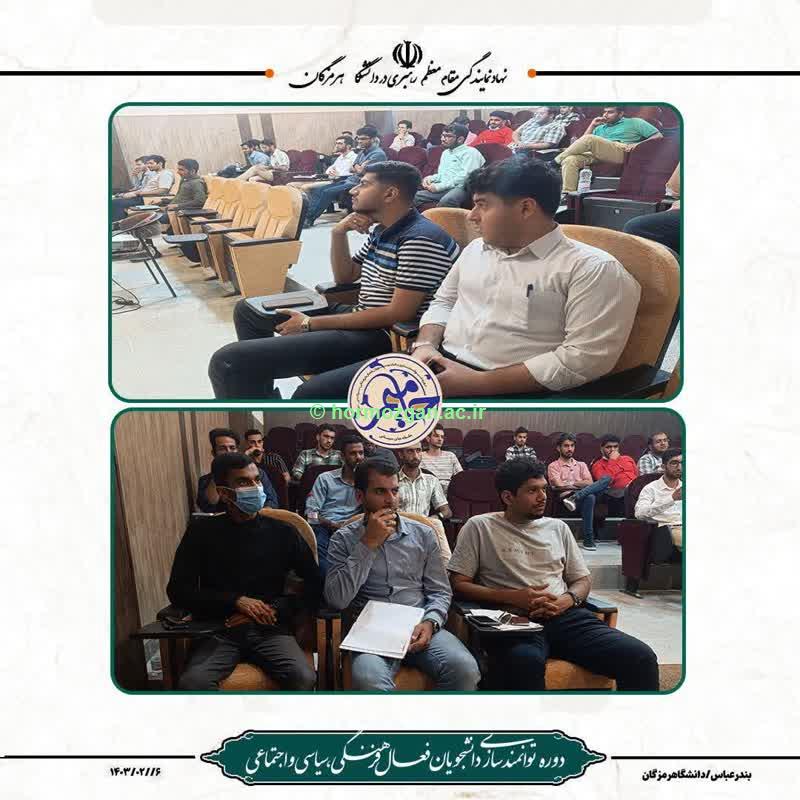 روز اول از مرحله دانشگاهی سومین دوره توانمندسازی دانشجویان فعال فرهنگی سیاسی دانشگاه‌ هرمزگان