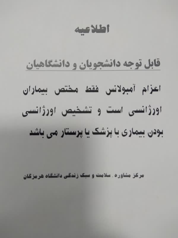 اطلاعیه در خصوص استفاده از آمبولانس درمانگاه