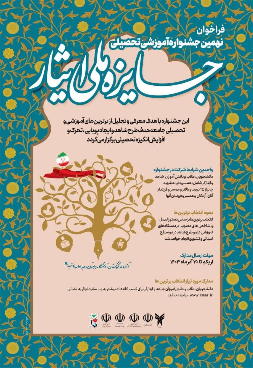 فراخوان نهمین جشنواره آموزشی تحصیلی جایزه ملی ایثار