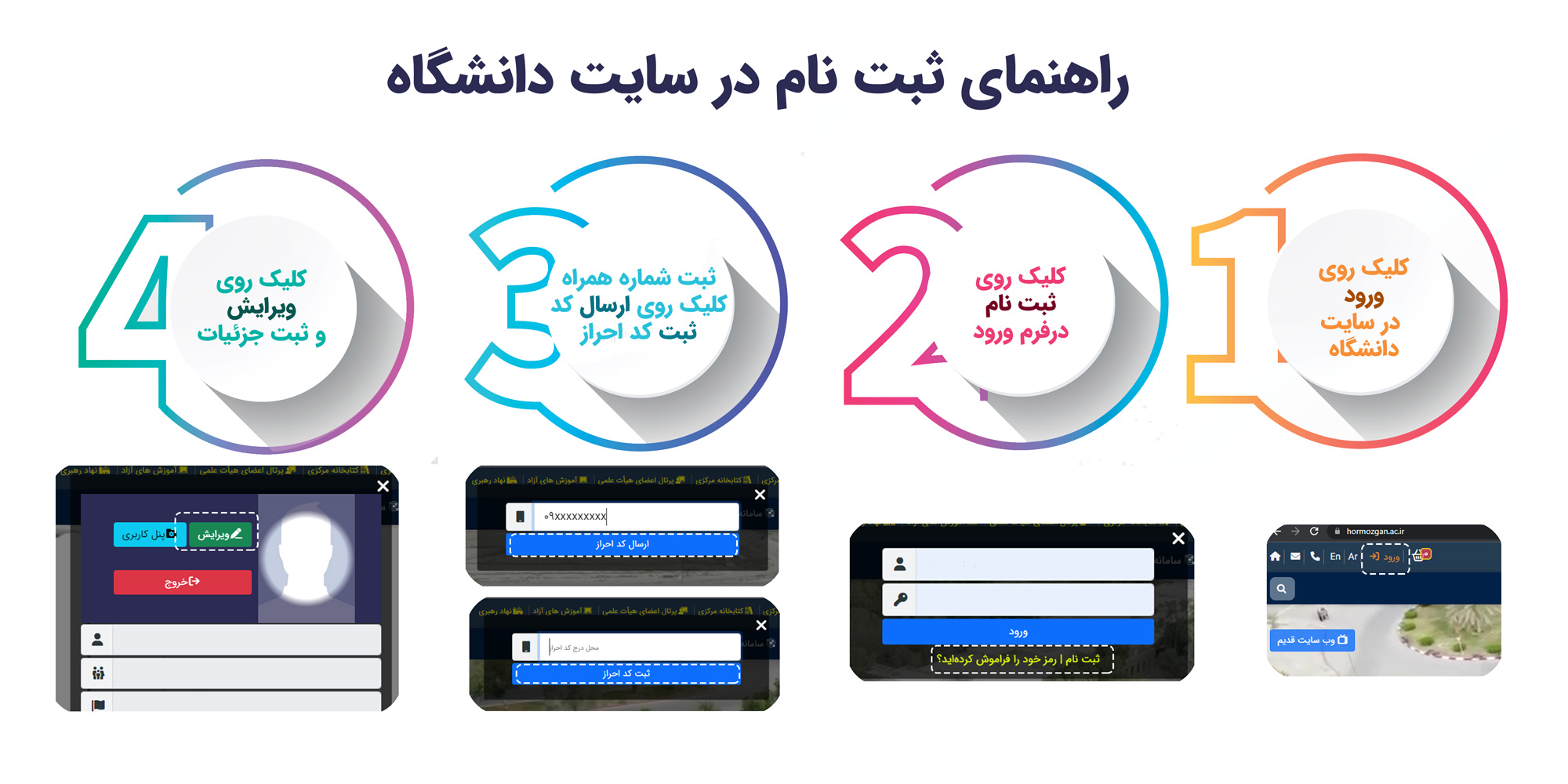 راهنمای ثبت نام در سایت دانشگاه