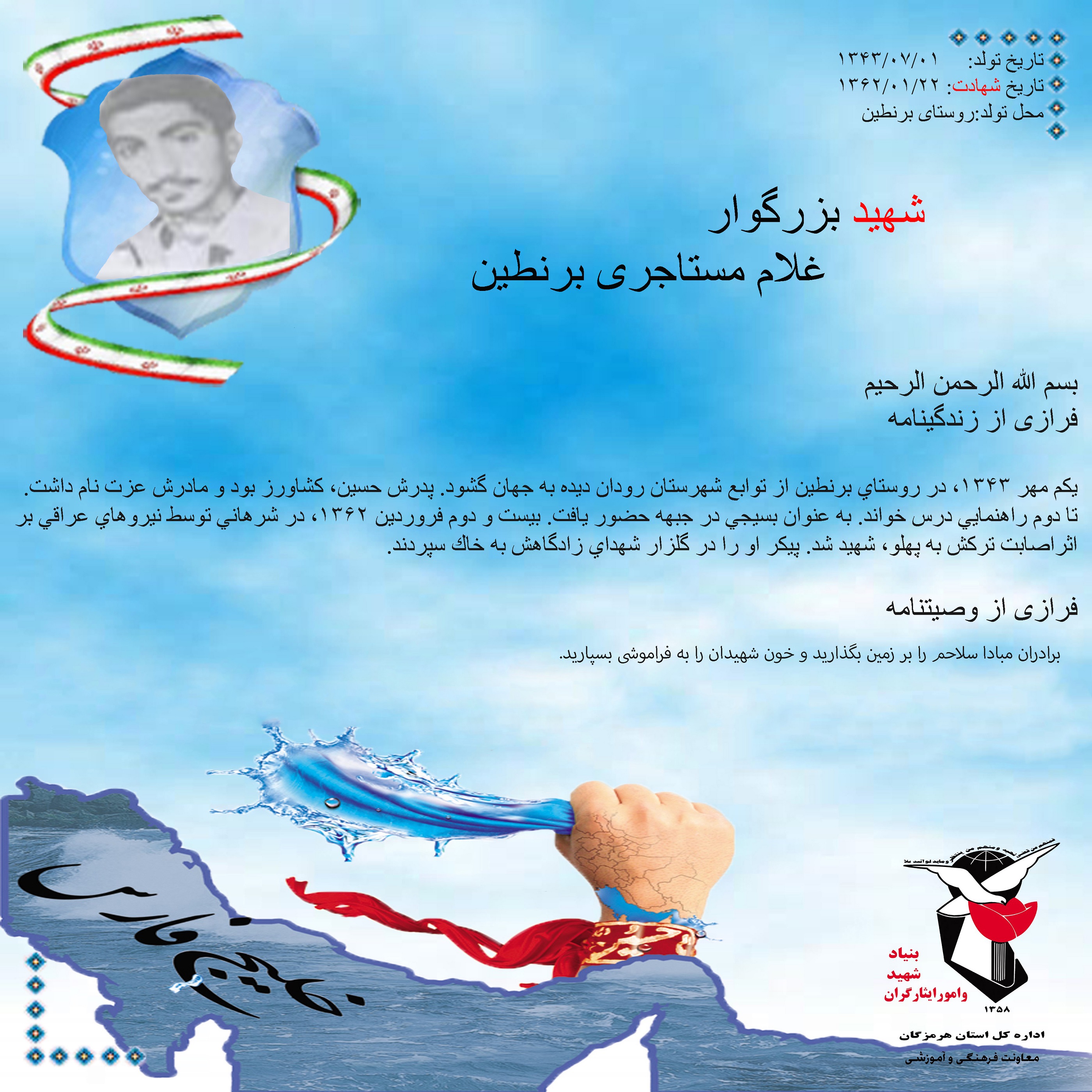 فرازی از زندگینامه و وصیتنامه شهید بزرگوار غلام مستاجری برنطین