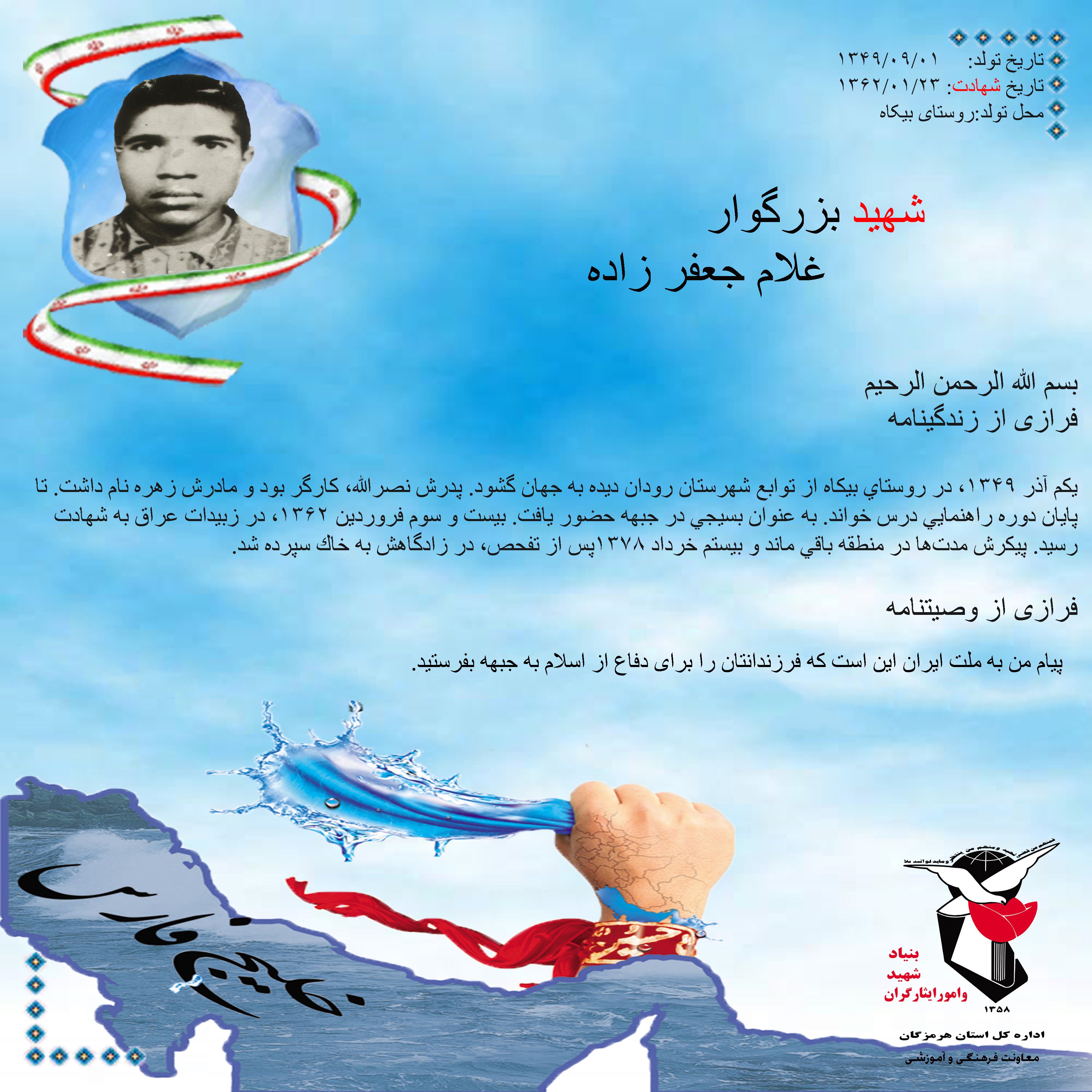 فرازی از زندگینامه و وصیتنامه شهید بزرگوار غلام جعفرزاده