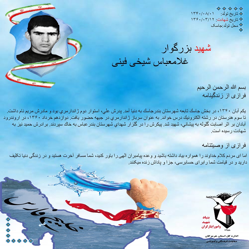 فرازی از زندگینامه و وصیتنامه شهید بزرگوار غلامعباس شیخی فینی