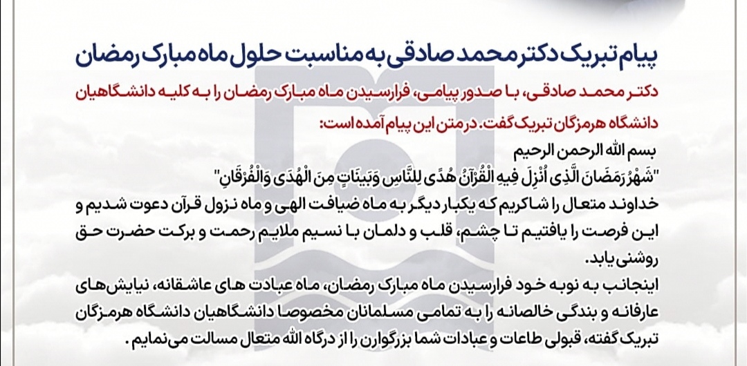 پیام تبریک ریاست محترم دانشگاه هرمزگان به مناسبت حلول ماه مبارک رمضان