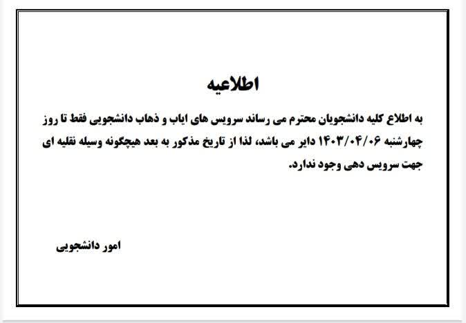 اطلاعیه تاریخ پایان سرویس دهی وسایل نقلیه ایاب و ذهاب دانشجویی