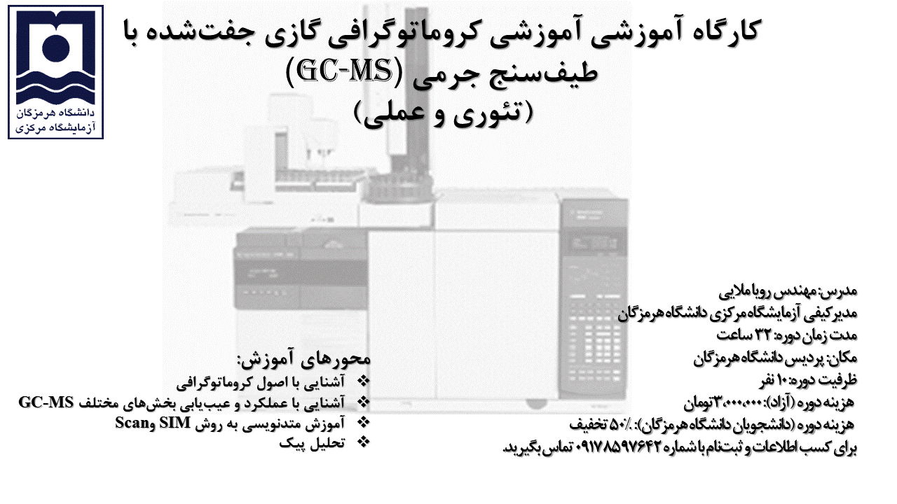 برگزاری دوره آموزش دستگاه کروماتوگرافی گازی جفت شده با دتکتور طیف سنج جرمی