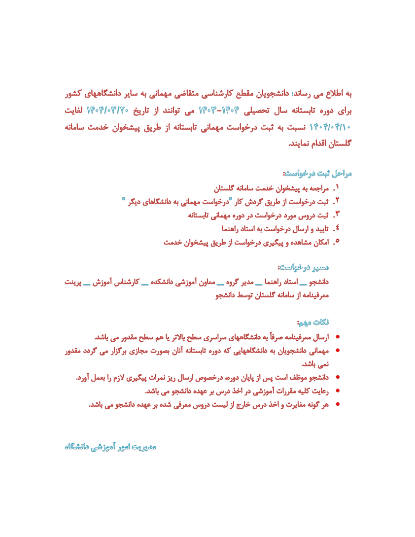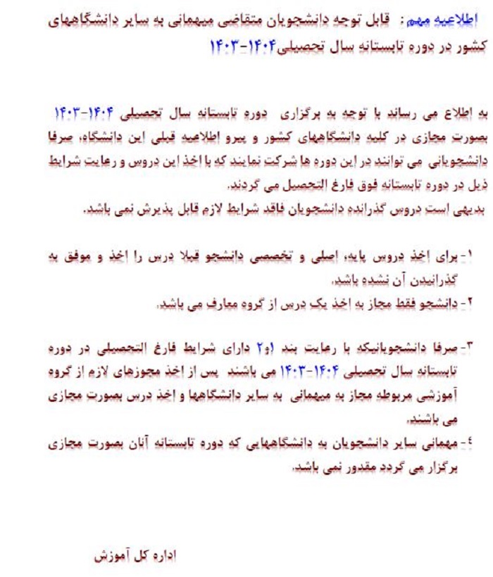 اطلاعیه مهم : قابل توجه دانشجویان متقاضی میهمانی به سایر دانشگاههای کشور در دوره تابستانه سال تحصیلی1404-1403