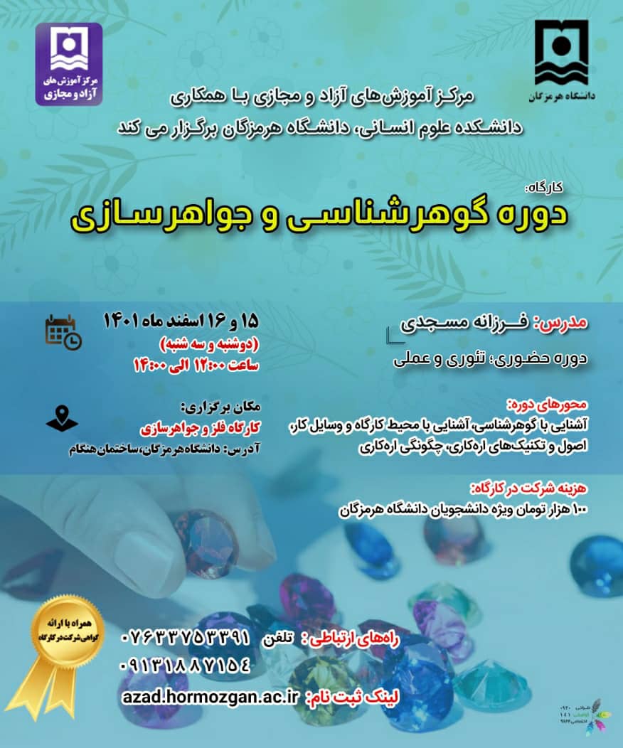 برگزاری دوره گوهرشناسی و جواهرسازی
