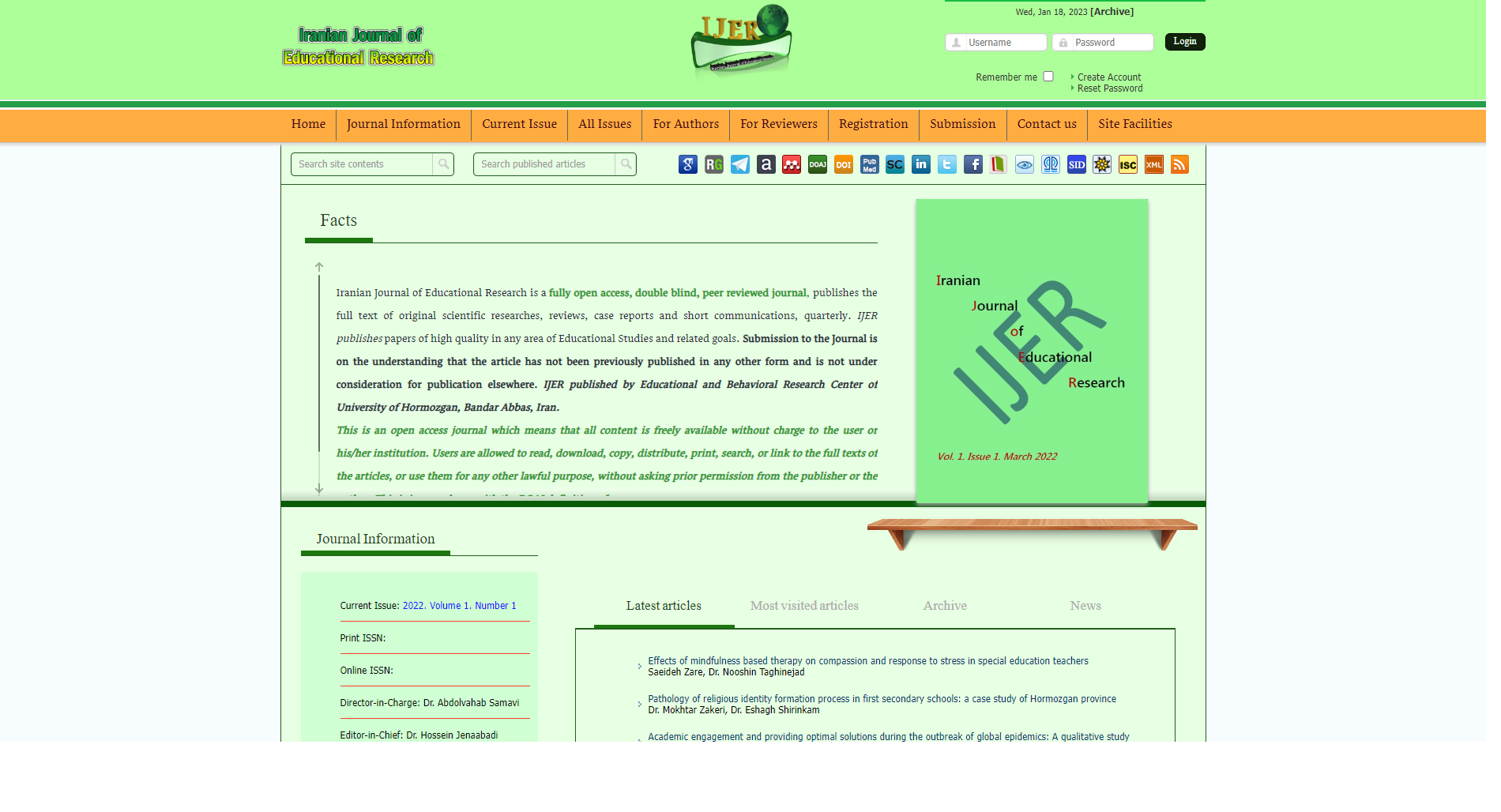 بدینوسیله به اطلاع می رساند مجله ایرانی تحقیقات تربیتی (Iranian Journal of Educational Research) توسط پژوهشکده هرمز دانشگاه هرمزگان منتشر می شود.