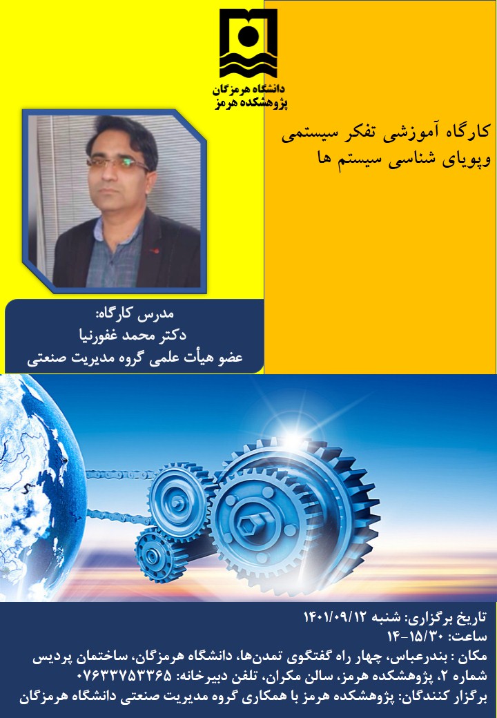 برگزاری کارگاه آموزشی تفکر سیستمی وپویایی شناسی سیستم ها