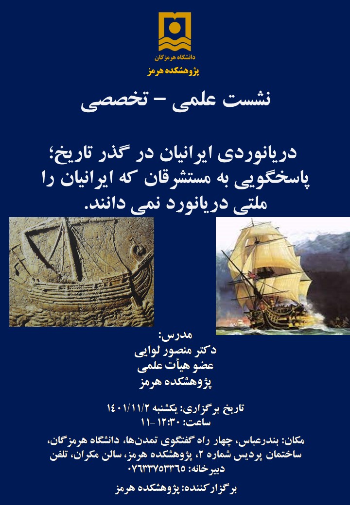 برگزاری نشست علمی - تخصصی (دریانوردی ایرانیان در گذر تاریخ؛ پاسخگویی به مستشرقان که ایرانیان را ملتی دریانورد نمیدانند.)