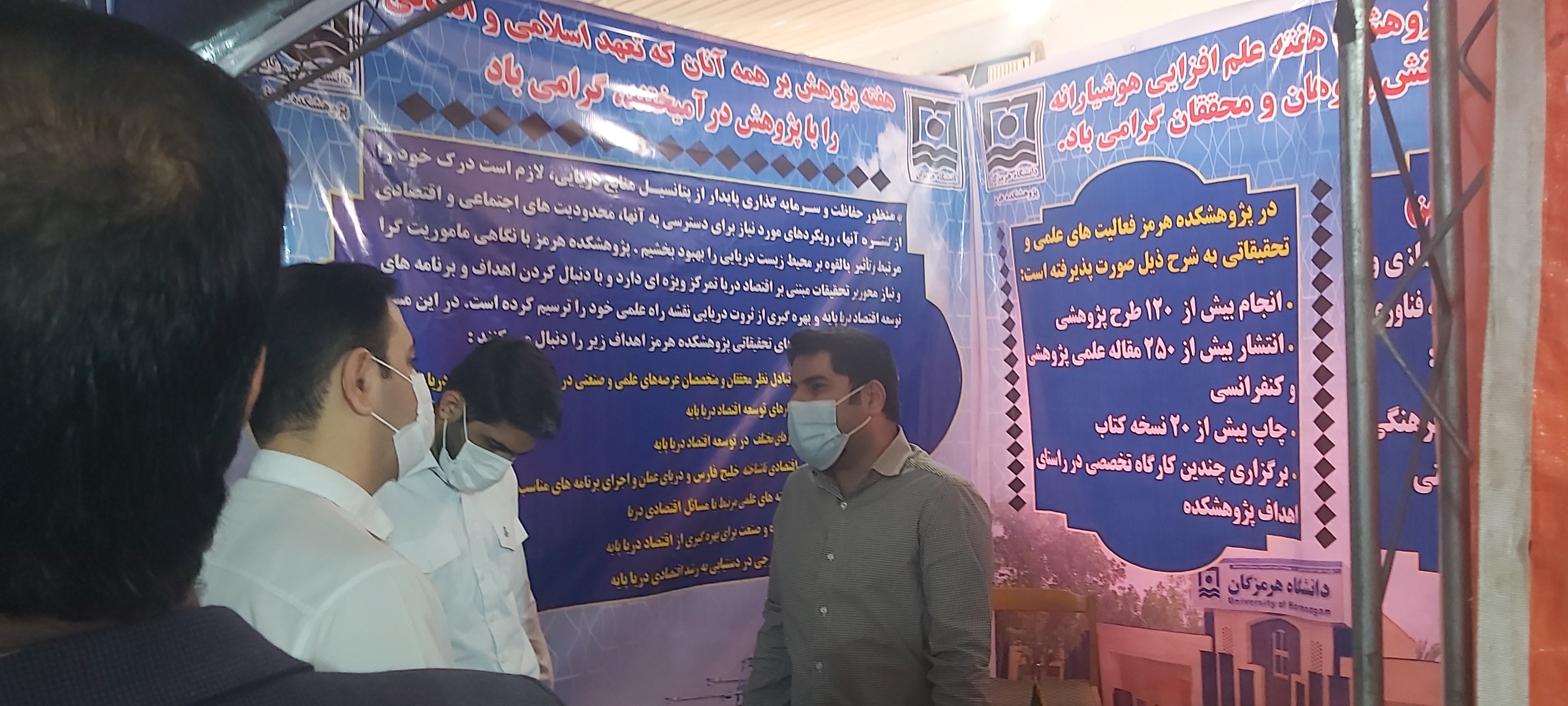 بازدید ریاست محترم دانشگاه هرمزگان از غرفه دستاوردهای علمی پژوهشکده هرمز