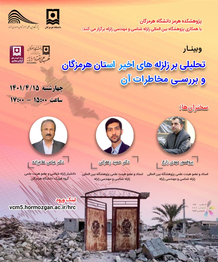برگزاری وبینار: تحلیلی بر زلزله های اخیر استان هرمزگان و بررسی مخاطرات آن