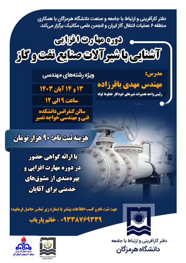 برگزاری کارگاه مهارت افزائی با عنوان آموزش آشنایی با شیرآلات صنایع نفت و گاز