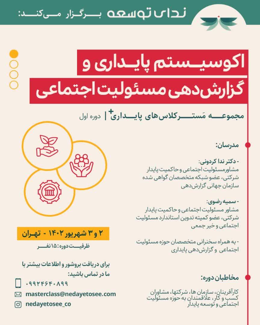 برگزاری دوره اکوسیستم پایداری و گزارش دهی مسئولیت اجتماعی توسط ندای توسعه مجری مشترک طرح پژوهشی دانشگاه هرمزگان