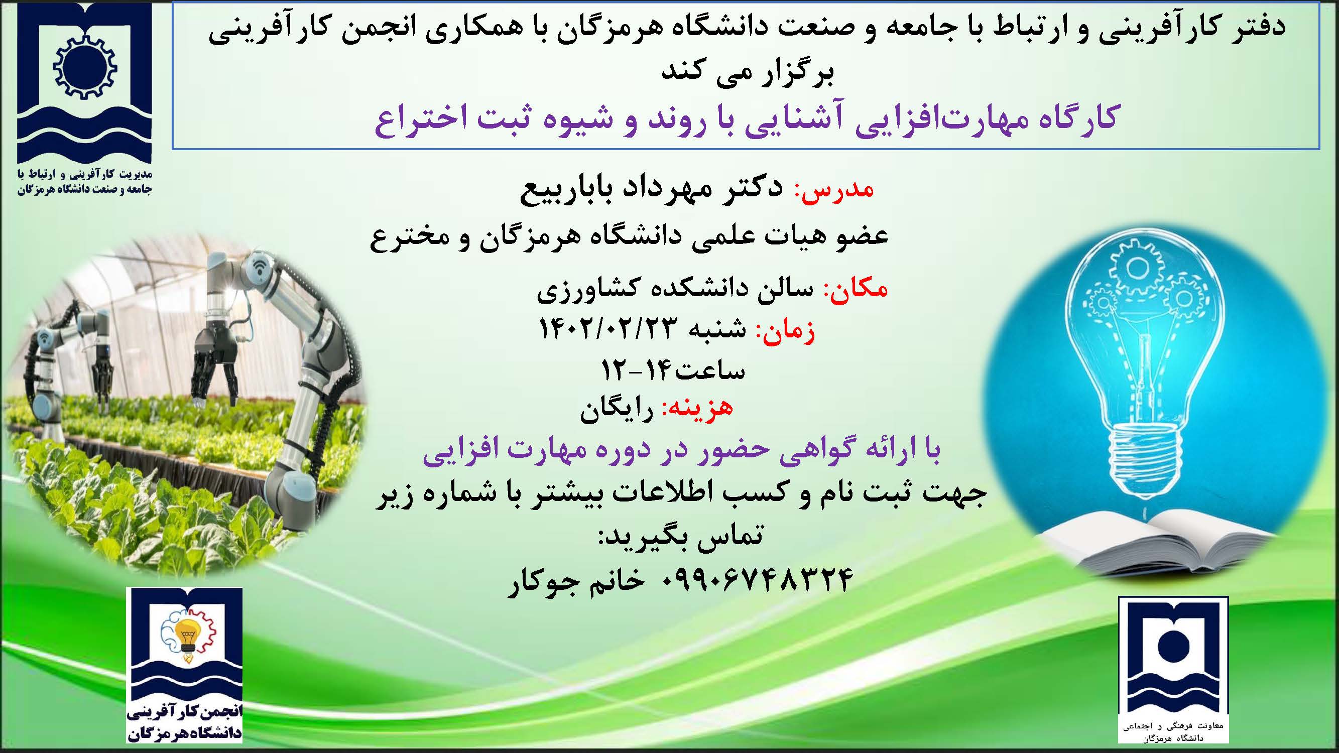 برگزاری دوره مهارت افزائی آشنائی با روند و شیوه ثبت اختراع
