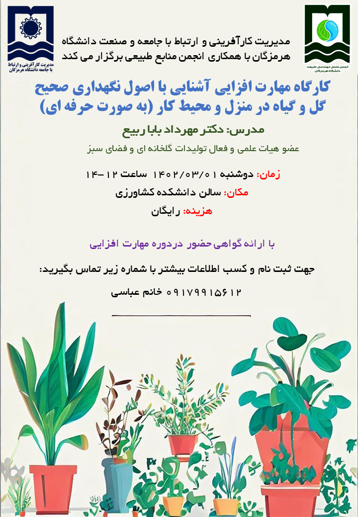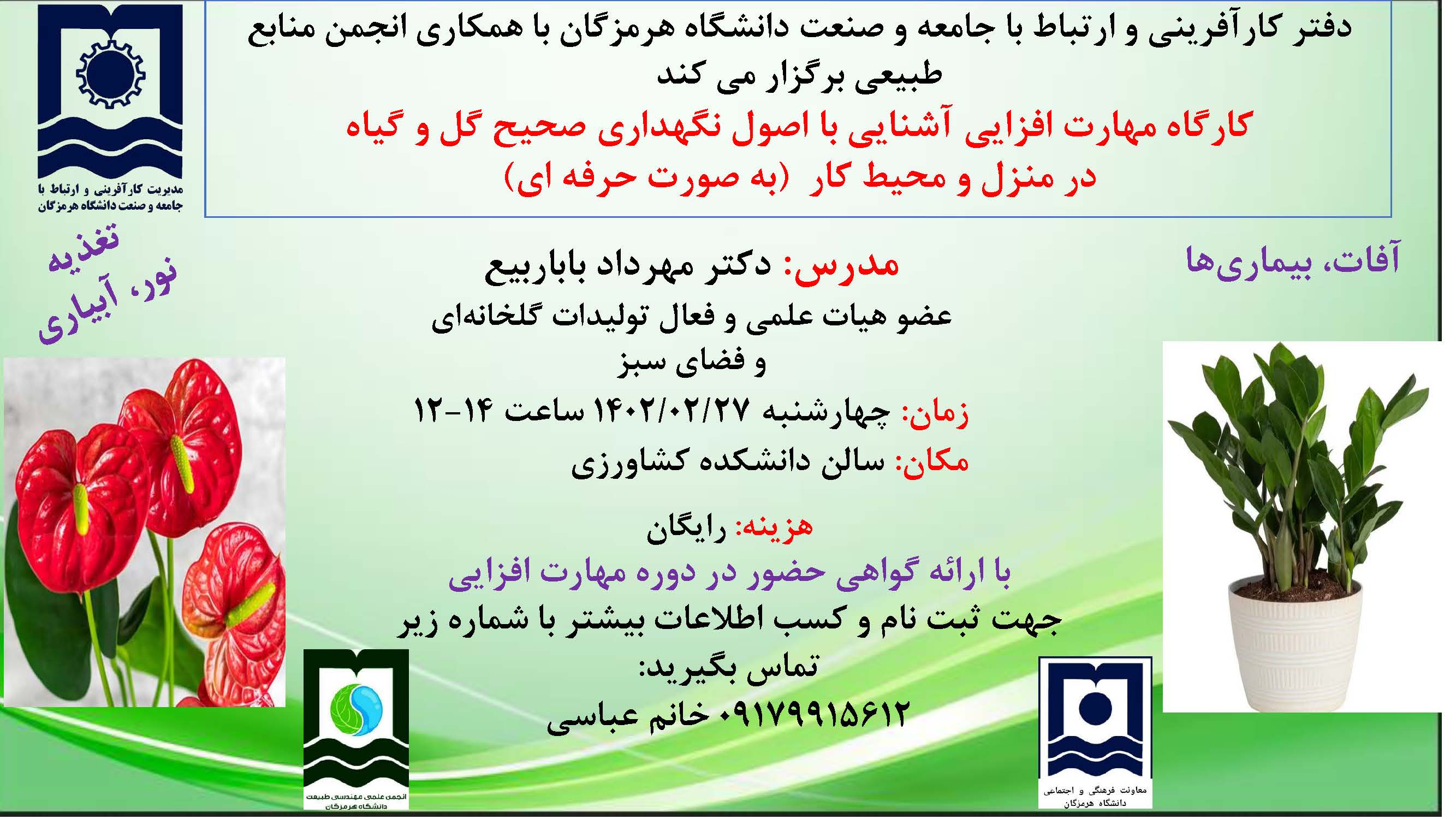 برگزاری دوره مهارت افزایی آشنائی با اصول نگهداری گل و گیاه در منزل و محیط کار