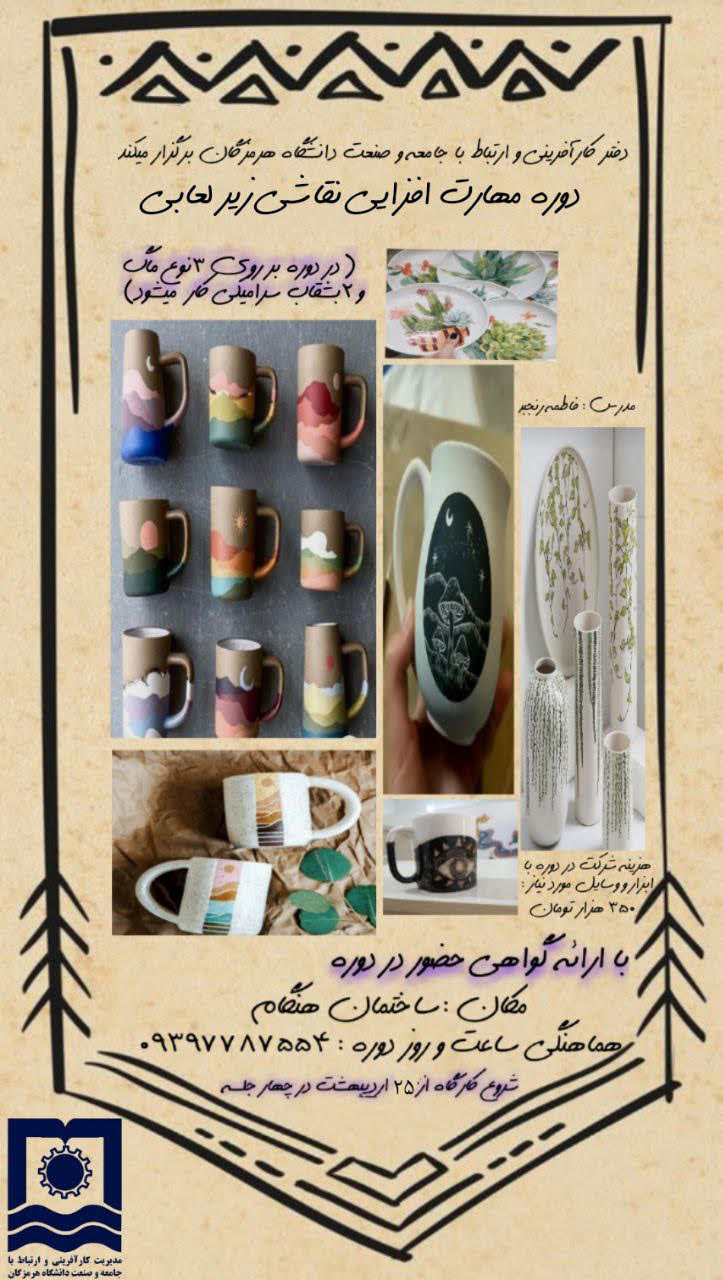 برگزاری دوره مهارت افزائی نقاشی زیر لعابی