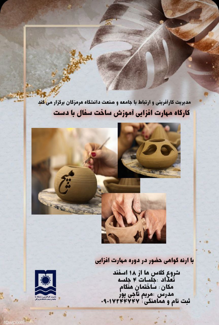 تمدید مهلت ثبت نام کارگاه مهارت افزایی آموزش ساخت سفال با دست