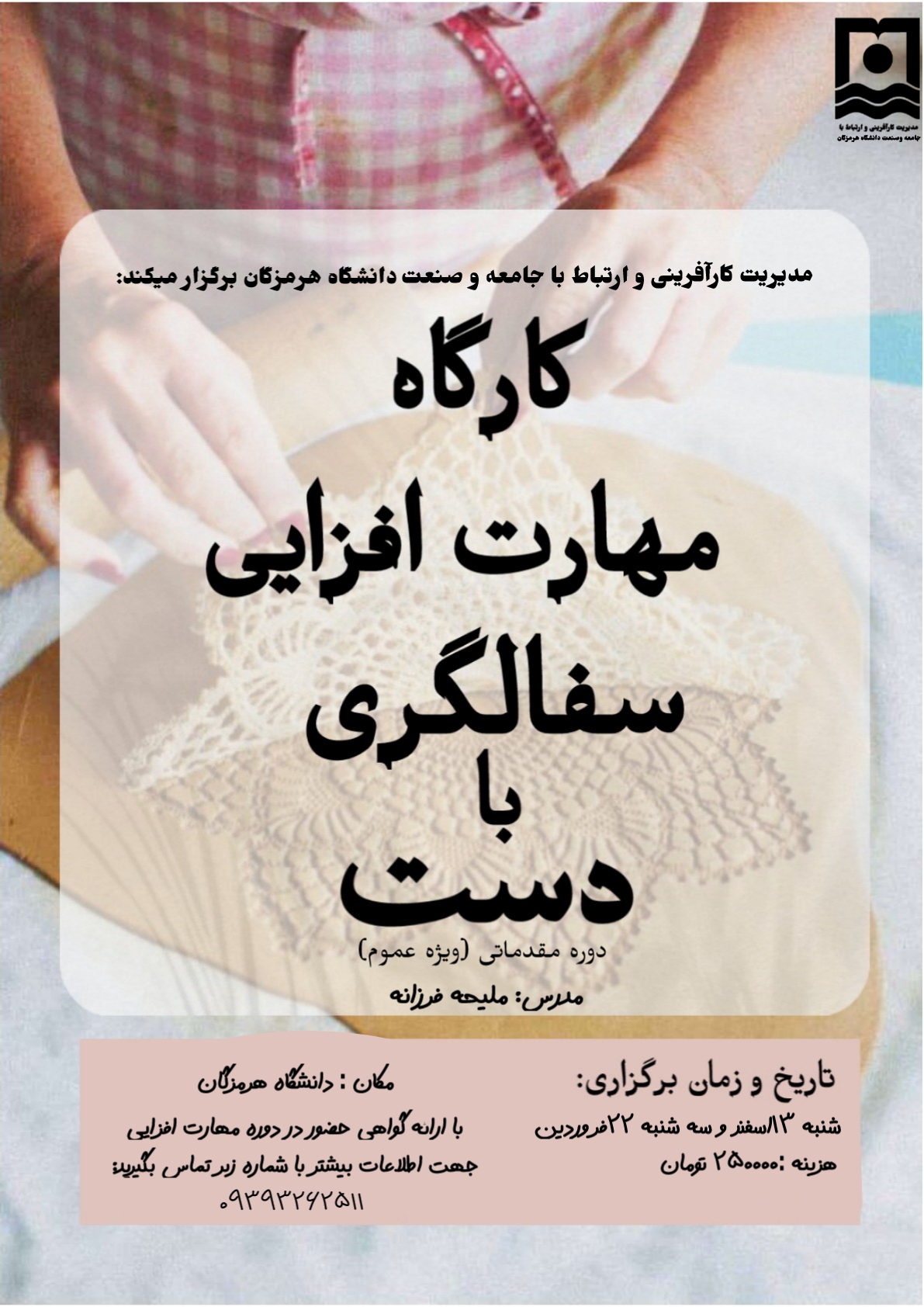 تمدید مهلت ثبت نام کارگاه مهارت افزایی ساخت اکسسوری های سرامیکی و سفالی